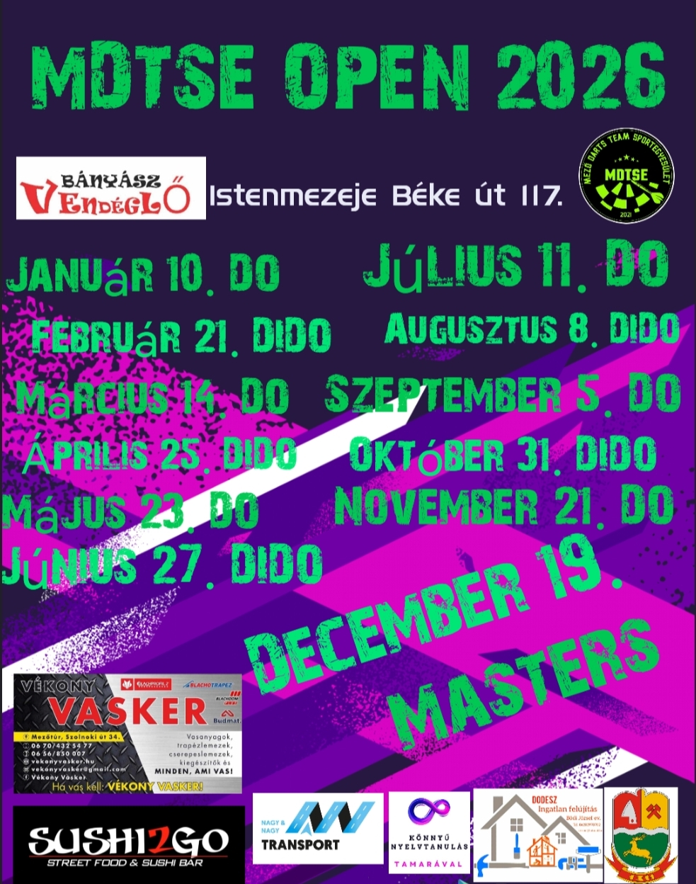 MDTSE csapata darts versenyeket szervez minden hónapban Istenmezején. A versenyek mindenki számára nyitottak, legyen az amatőr vagy profi játékos. Célunk, hogy népszerűsítsük és fejlesszük a darts sportot a térségben.