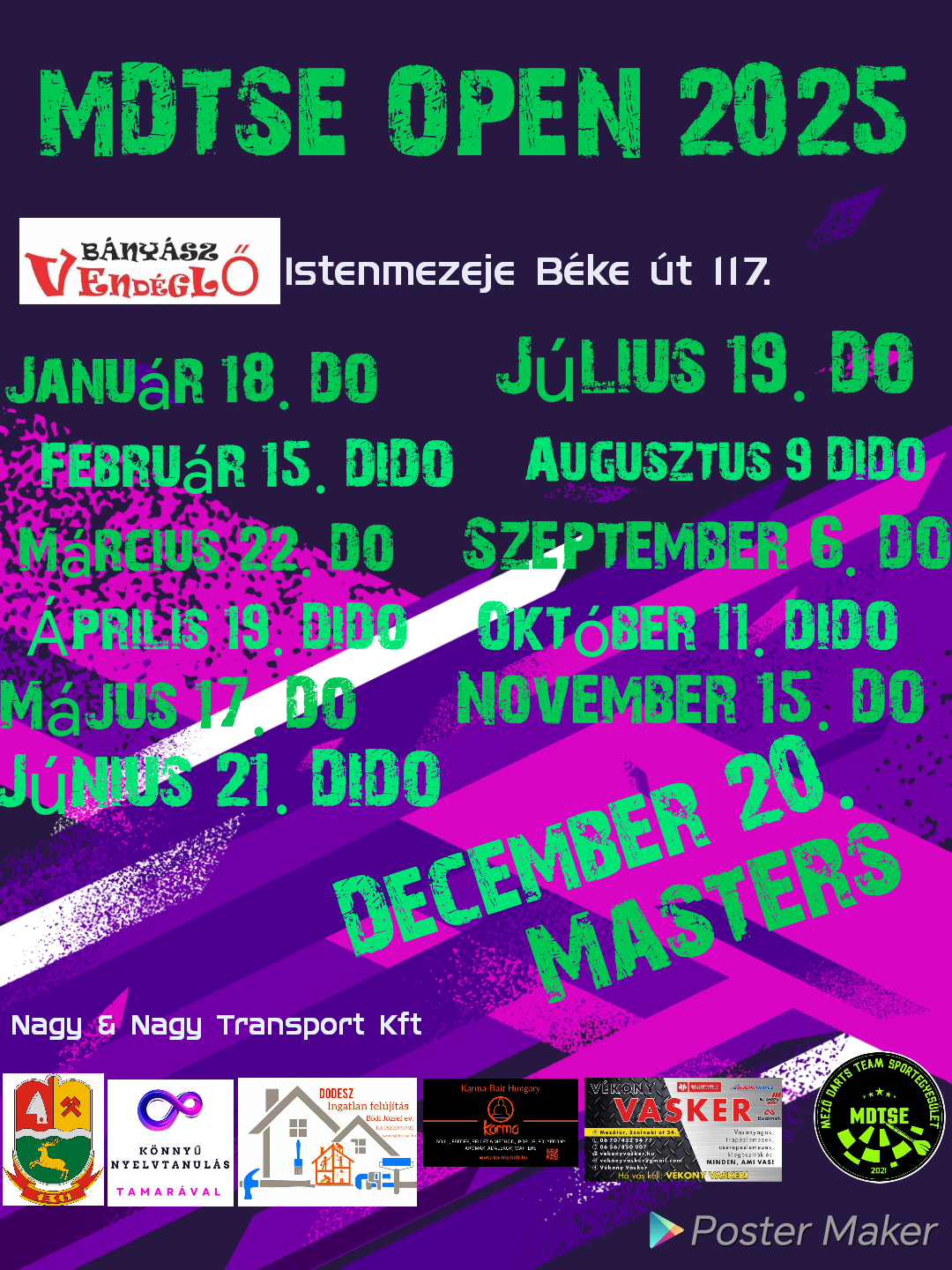 Az MDTSE darts versenyeket kínál Istenmezején minden darts kedvelőnek. A versenyekre való nevezés egyszerűen történik az online jelentkezési űrlap kitöltésével. Annyi a dolgod, hogy kitöltöd az űrlapot és kiválasztod melyik versenyünkre szeretnél nevezni, majd a nevezés gombra kattintva véglegesíted és már el is fogadtuk nevezésed az adott versenyünkre. Valamint ha mégsem tudtok eljönni, de már neveztetek korábban ugyan itt lemondhatjátok nevezéseteket. Mind ezt a kezdés időpont előtt 5 órával tehetitek meg! Felhívjuk figyelmeteket, aki nem mondja le és nem jelenik meg a versenyen, legyen az Open vagy Mdl a következő három hónapban nem vehet részt versenyünk lebonyolításán! Lásd verseny szabályzat!
