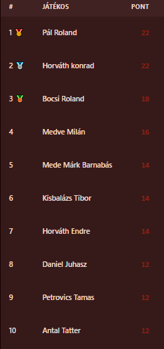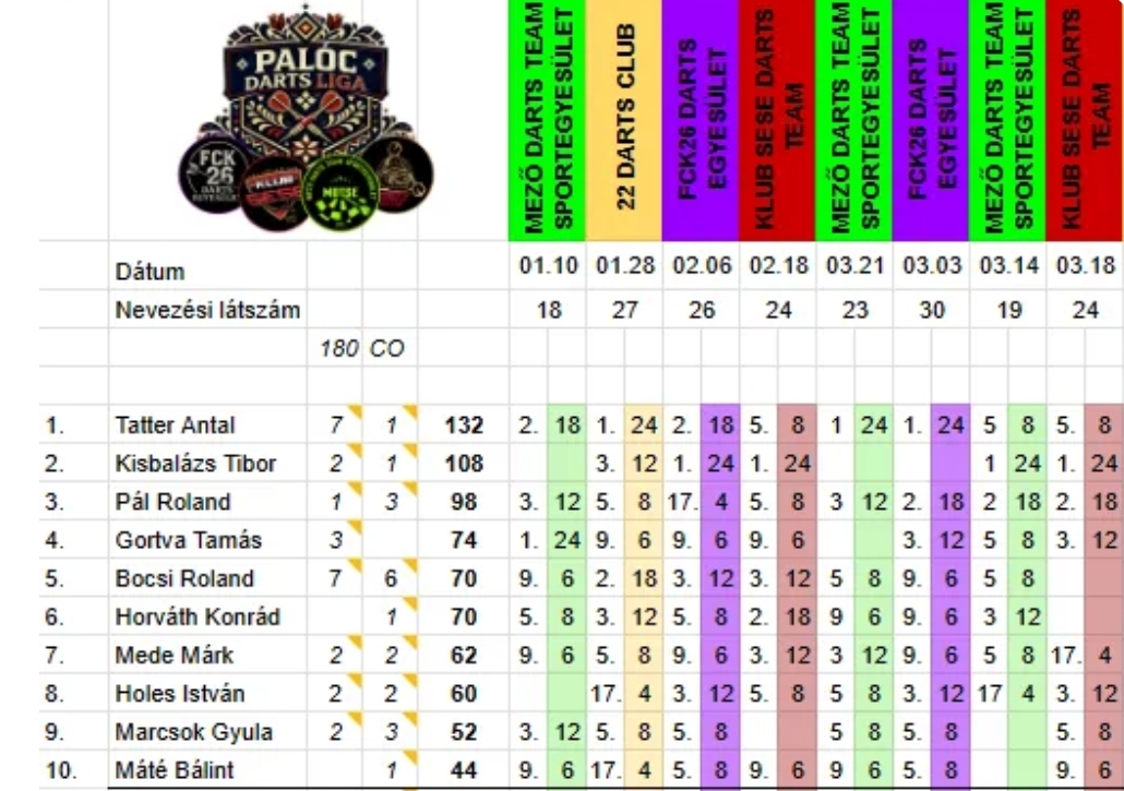 PALÓC DARTS LIGA JELENLEGI ÁLLÁSA